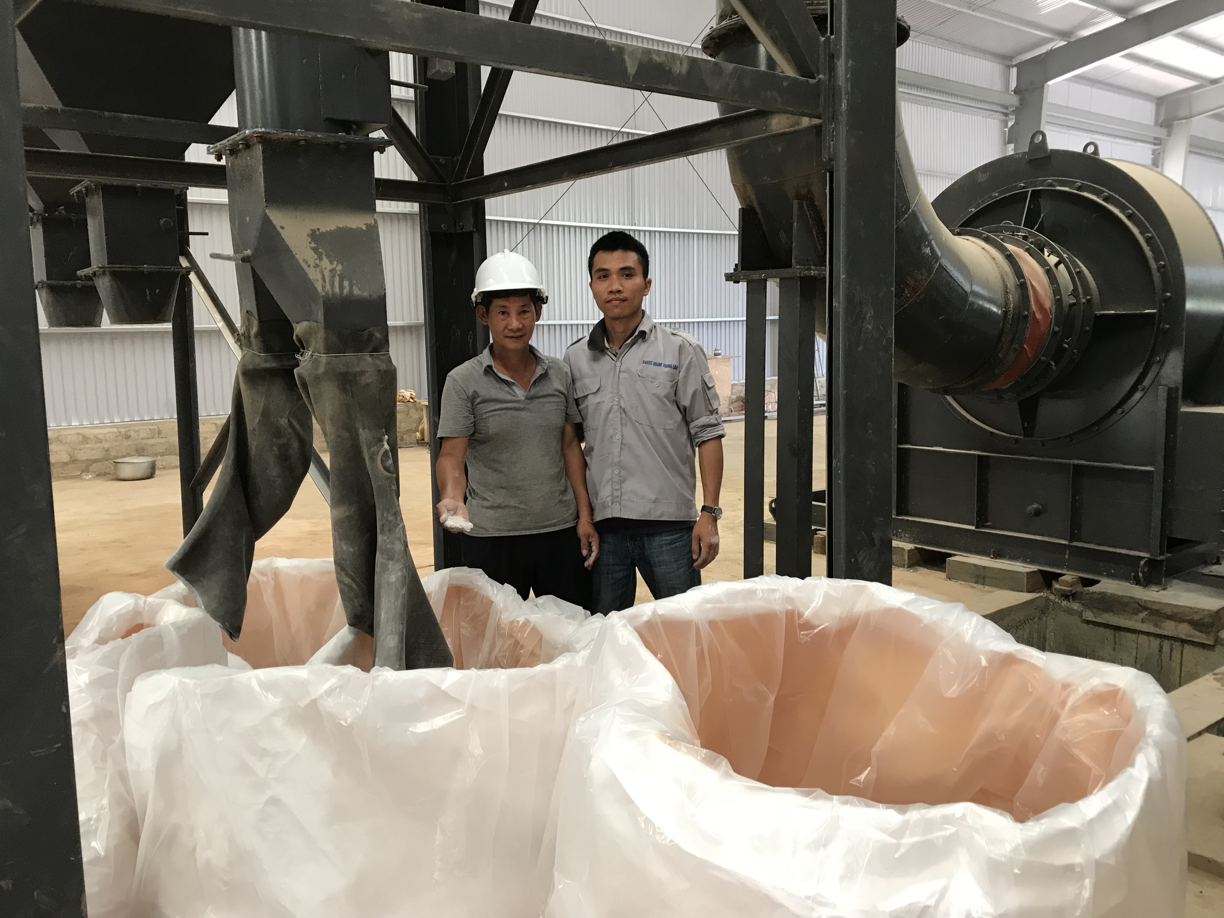 By conducting the barite processing project supported by the Lao government, we, Quang Trung company, are proud to manufacture stable and consistently high-quality products by directly processing the powder at our own factory which is close to our mine in Laos. By having large mineral reserves from the mine, we guarantee to maintain high productivity with barite powder having a specific gravity of 4.2-4.4g/cm3.
