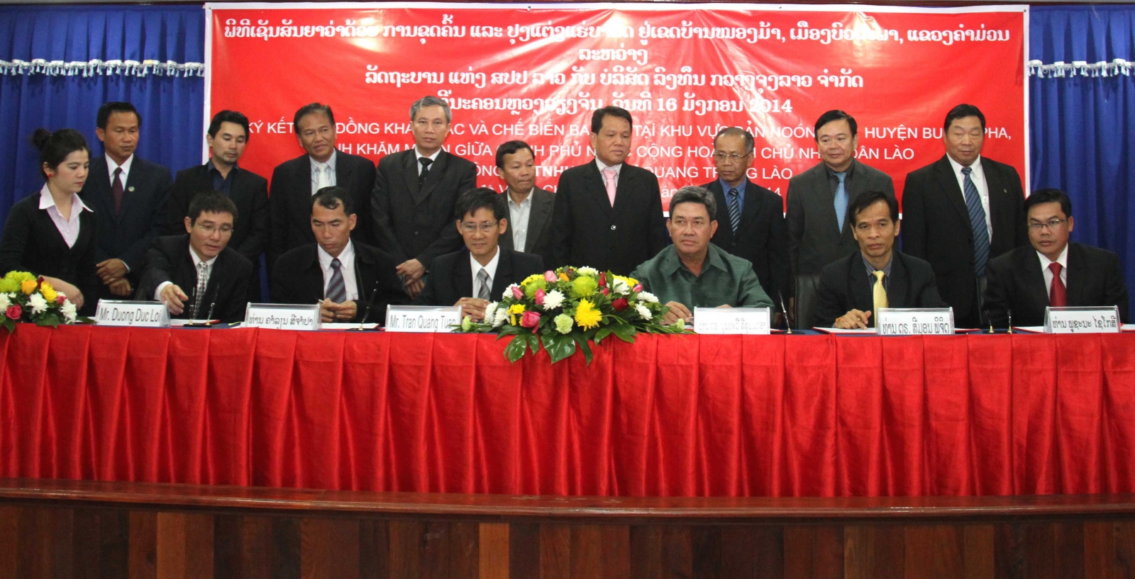 The contract signing ceremony of the partnership agreement between Lao government and Quang Trung company about Barite exploitation